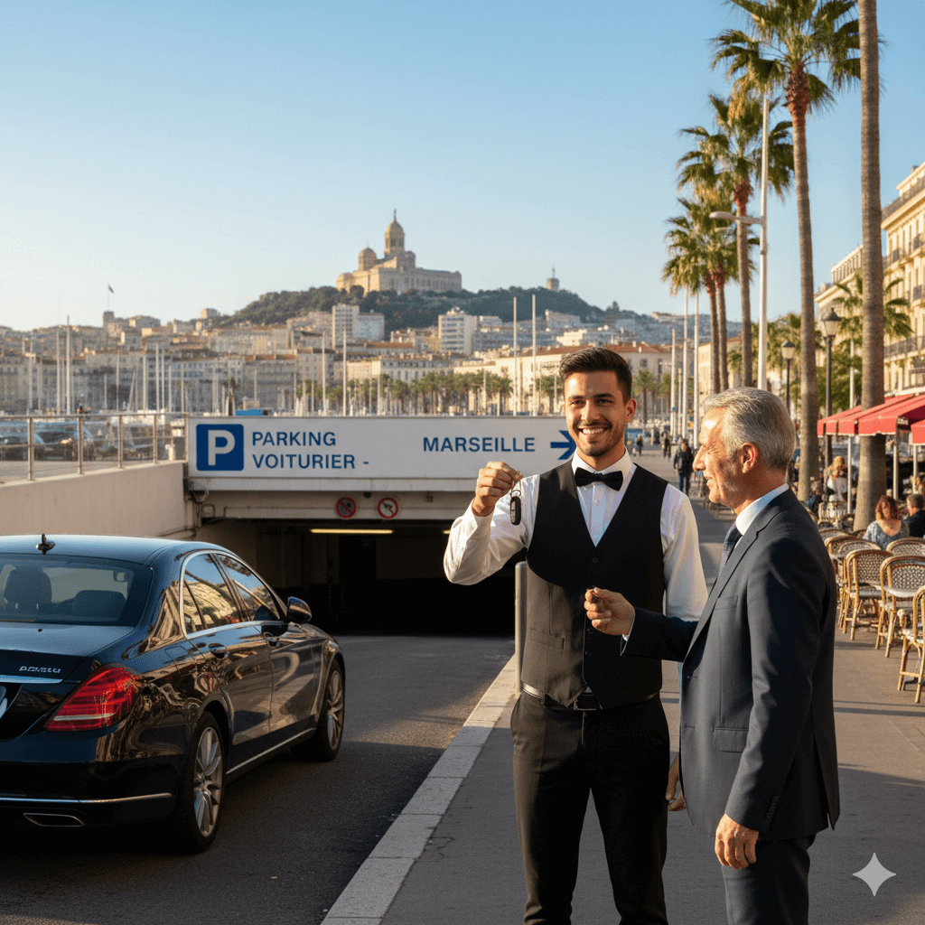 Un voiturier prendra ensuite en charge votre voiture et se chargera de la garer en toute sécurité.